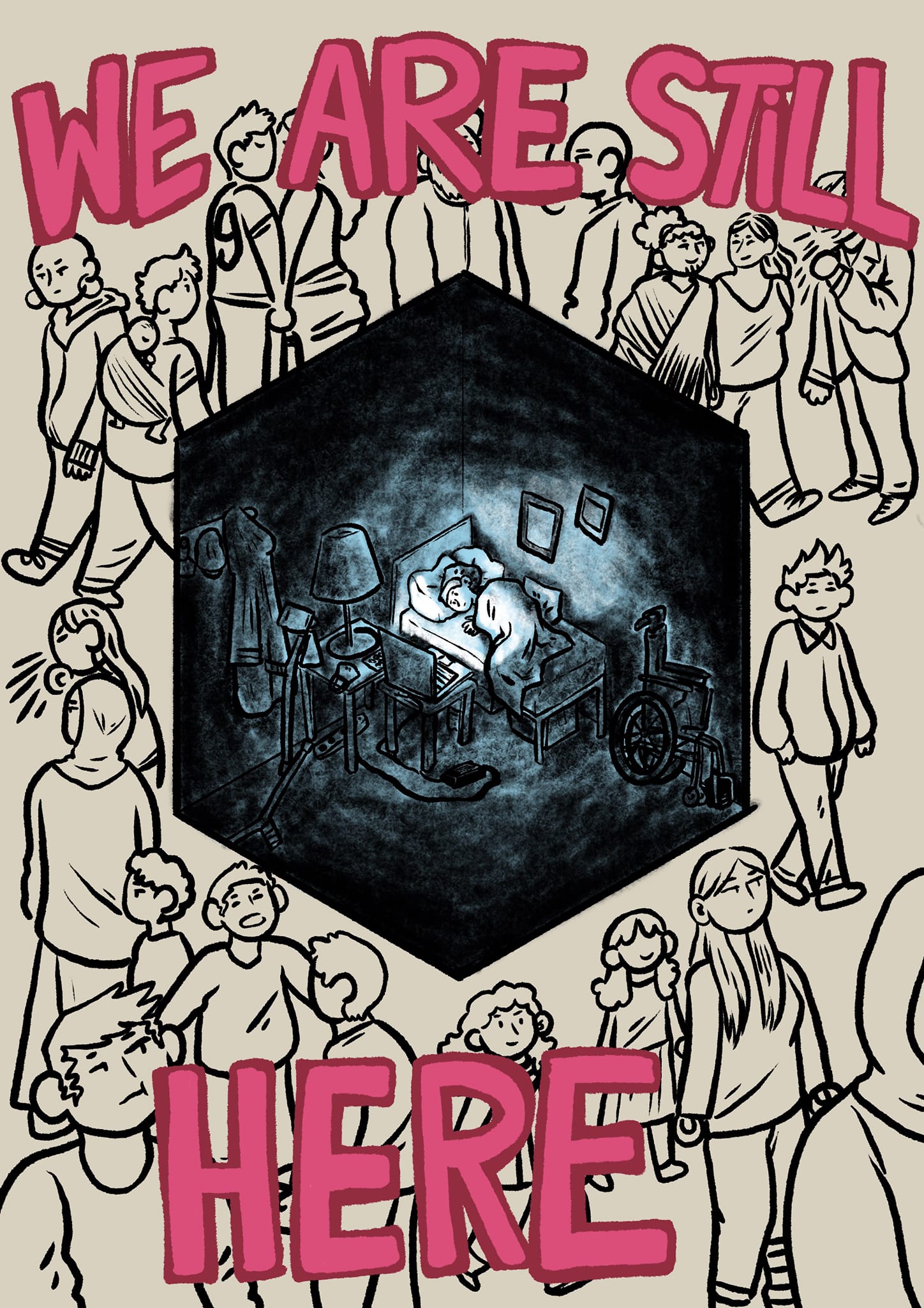 Sur les réseaux sociaux, nous avons accompagné la tribune du 29 janvier 2023 dans Libération (Covid-19 : les personnes «à risque», grandes oubliées de la politique sanitaire) du dessin du talentueux Calvin Arium :